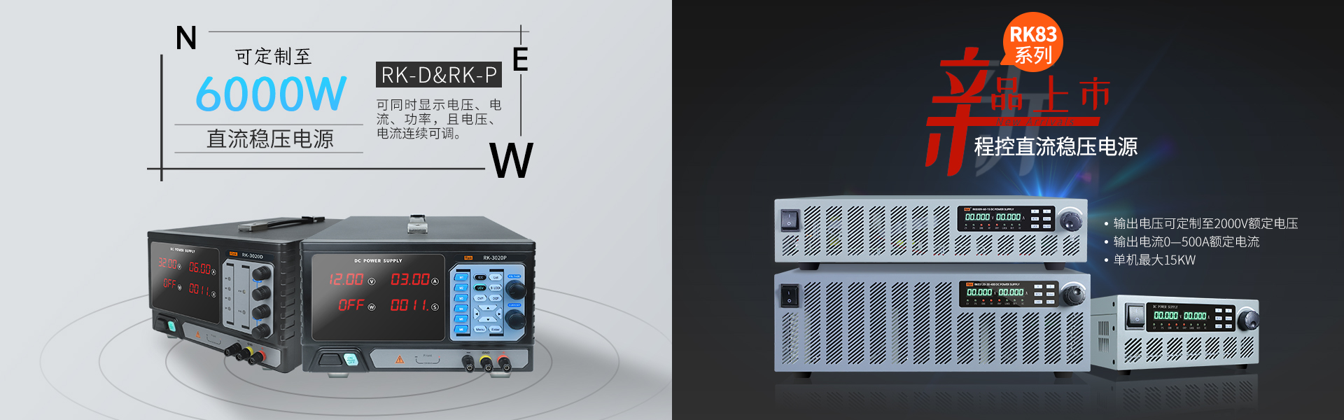 RK-3020P/RK-3030P/RK-6010P/RK-6020P/RK-6030P/RK-6060P直流穩(wěn)壓電源(可定制至6000W)RK-3020P:電壓0-30V/電流0-20A/功率600W RK-3030P:電壓0-30V/電流0-30A/功率900W RK-6010P:電壓0-60V/電流0-10A/功率600W RK-6020P:電壓0-60V/電流0-20A/功率1200W RK-6030P:電壓0-60V/電流0-30A/功率1800W RK-6060P:電壓0-60V/電流0-60A/功率3600WRK-3020P/RK-3030P/RK-6010P/RK-6020P/RK-6030P/RK-6060P直流穩(wěn)壓電源(可定制至6000W)